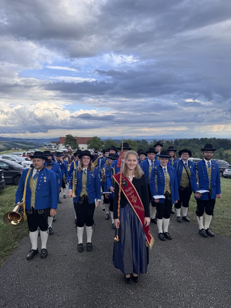 Im Juli wurden wir als Gastkapelle eingeladen, beim Musikfest in Lacken einzumarschieren. Trotz des regnerischen Wetters meisterten wir den Auftritt erfolgreich. Besonders stolz sind wir auf unsere Nachwuchs-Stabführerin Helene Augdoppler, die uns mit Bravour souverän durch die verschiedenen Ausrückungen führte.
